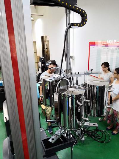 2018年8月2日,來自重慶金世利航空材料有限公司的張主任等一行三人蒞臨珠海,對前期訂購的九臺試驗機設(shè)備進(jìn)行了現(xiàn)場驗收。