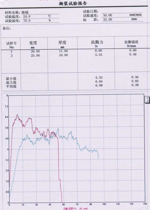 海棉拉伸撕裂試驗報告內(nèi)容:①抗撕力 ②抗撕強(qiáng)度