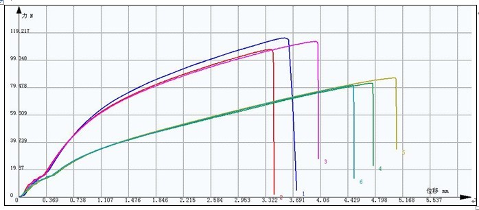 備 注:試樣1~3為普通厚紙板,試樣4~6為鍍鋅紙板。要求求取最大負荷(Fmax)、斷裂伸長率