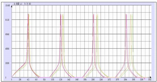 該用戶為某彈簧墊圈生產(chǎn)企業(yè)。試驗(yàn)時用速度1mm/min加載到88.96kN,力值再卸載到0N,重復(fù)3次;再用速度1mm/min加載到88.96kN,到88.96kN時這個力值位移為起點(diǎn),卸載力值,位移(變形)0.76mm時,試驗(yàn)結(jié)束,記錄該點(diǎn)的力值。(該力值命名:反彈率)